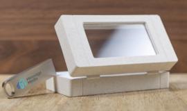 Boite PVC rigide individuelle , adaptée aux clés USB format "carte de crédit", capot transparent, fermeture par aimant, intérieur mousse blanche découpée à la forme de la clé